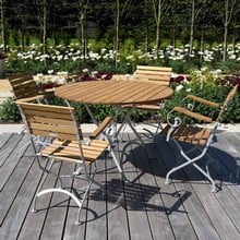 The metal is treated and powder-coated. With a wide selection of table and chair materials and styles to choose from such as our Nevada rattan furniture collection Helsinki bistro sets and wooden garden furniture sets you can complete your outdoor space with ease and start making the most of the brighter weather.